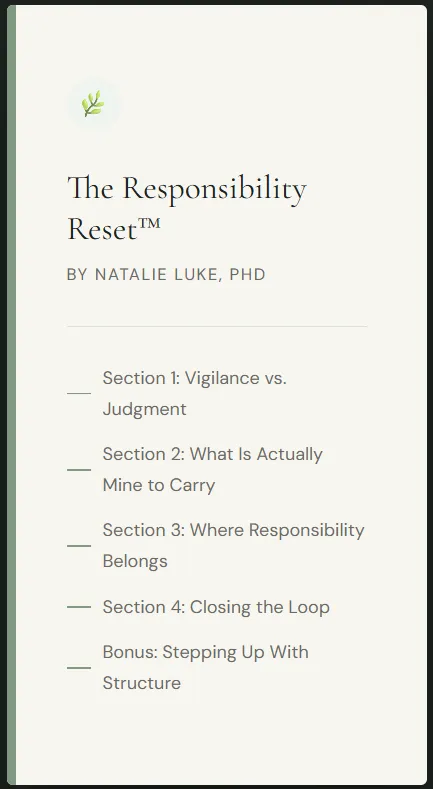 The Responsibility Reset™ gives high-performing leaders the one structure their brain has been missing — so they can stop carrying what was never theirs, close the loops that keep them awake, and finally rest without pretending everything is handled.